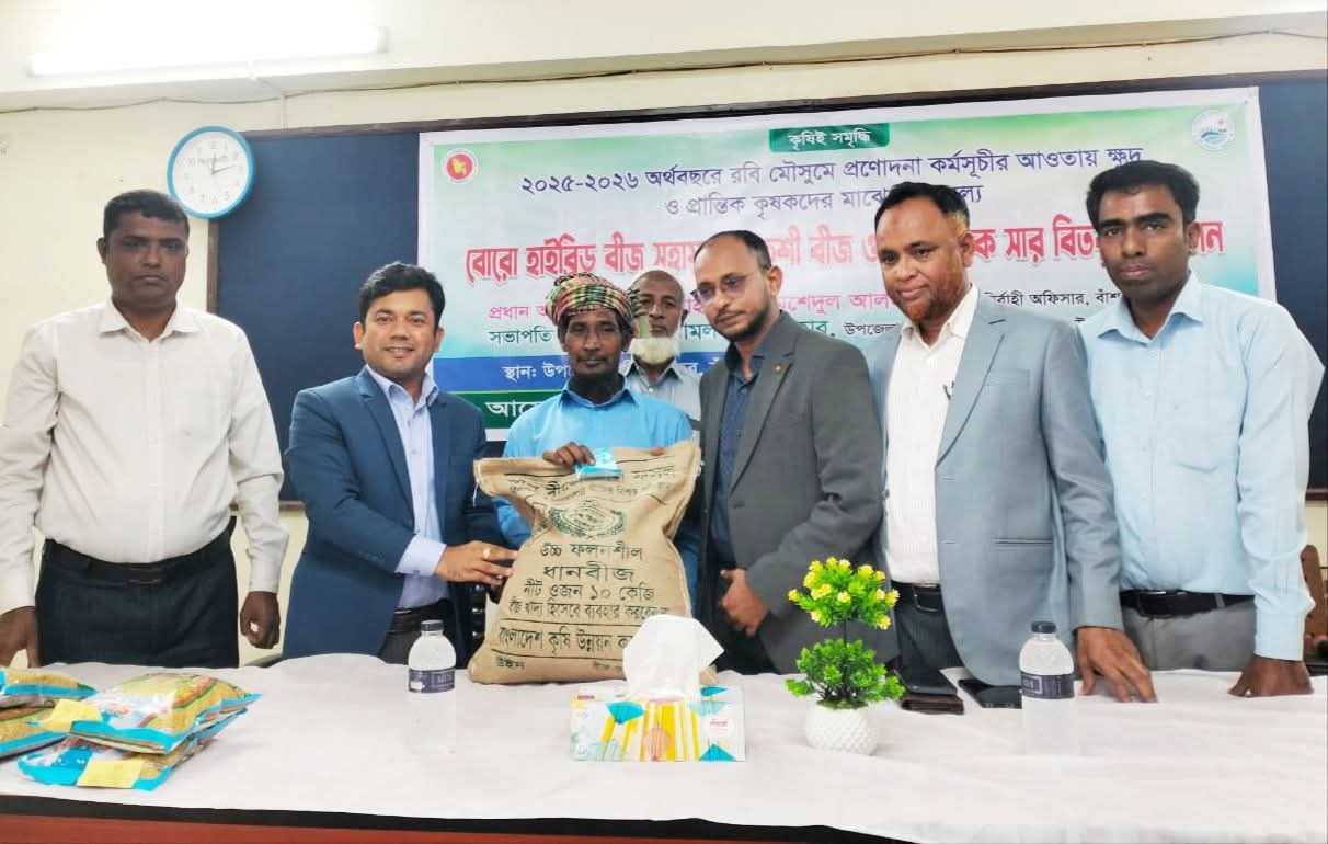 ‘কৃষিই সমৃদ্ধি’—এই স্লোগানকে সামনে রেখে ২০২৫–২০২৬ অর্থবছরের রবি মৌসুমে সরকারি প্রণোদনা কর্মসূচির আওতায় চট্টগ্রামের বাঁশখালী উপজেলায় ১ হাজার ৩২০ জন ক্ষুদ্র ও প্রান্তিক কৃষকের মাঝে বিনামূল্যে উন্নত জাতের ধানের বীজ ও রাসায়নিক সার বিতরণ করা হয়েছে।