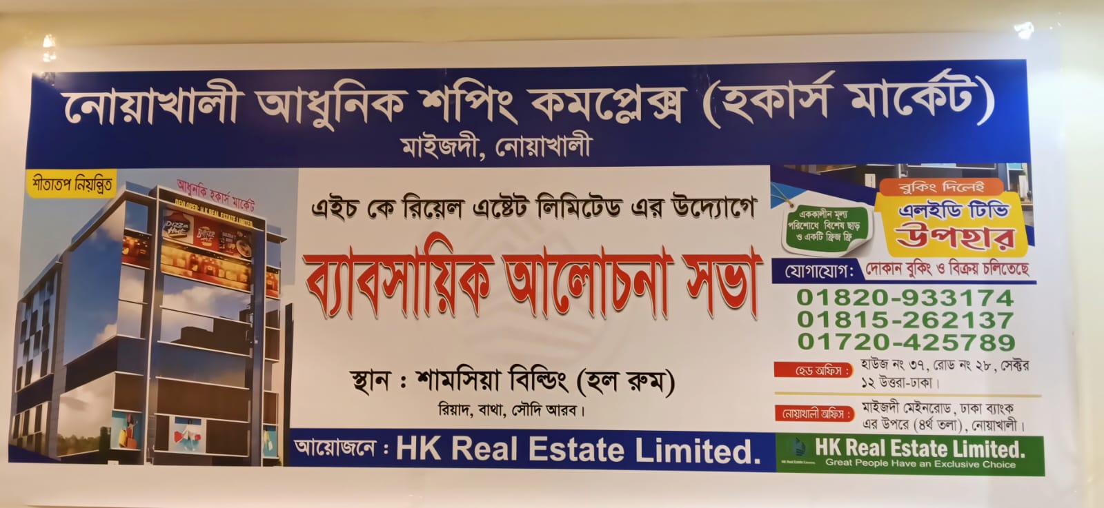 প্রবাসীদের সহযোগিতা পেলে নোয়াখালীতে একটি আধুনিক শপিং মল উপহার দিবেন বলে এইচ কে রিয়েল এস্টেট লিমিটেড কতৃপক্ষ জানান।