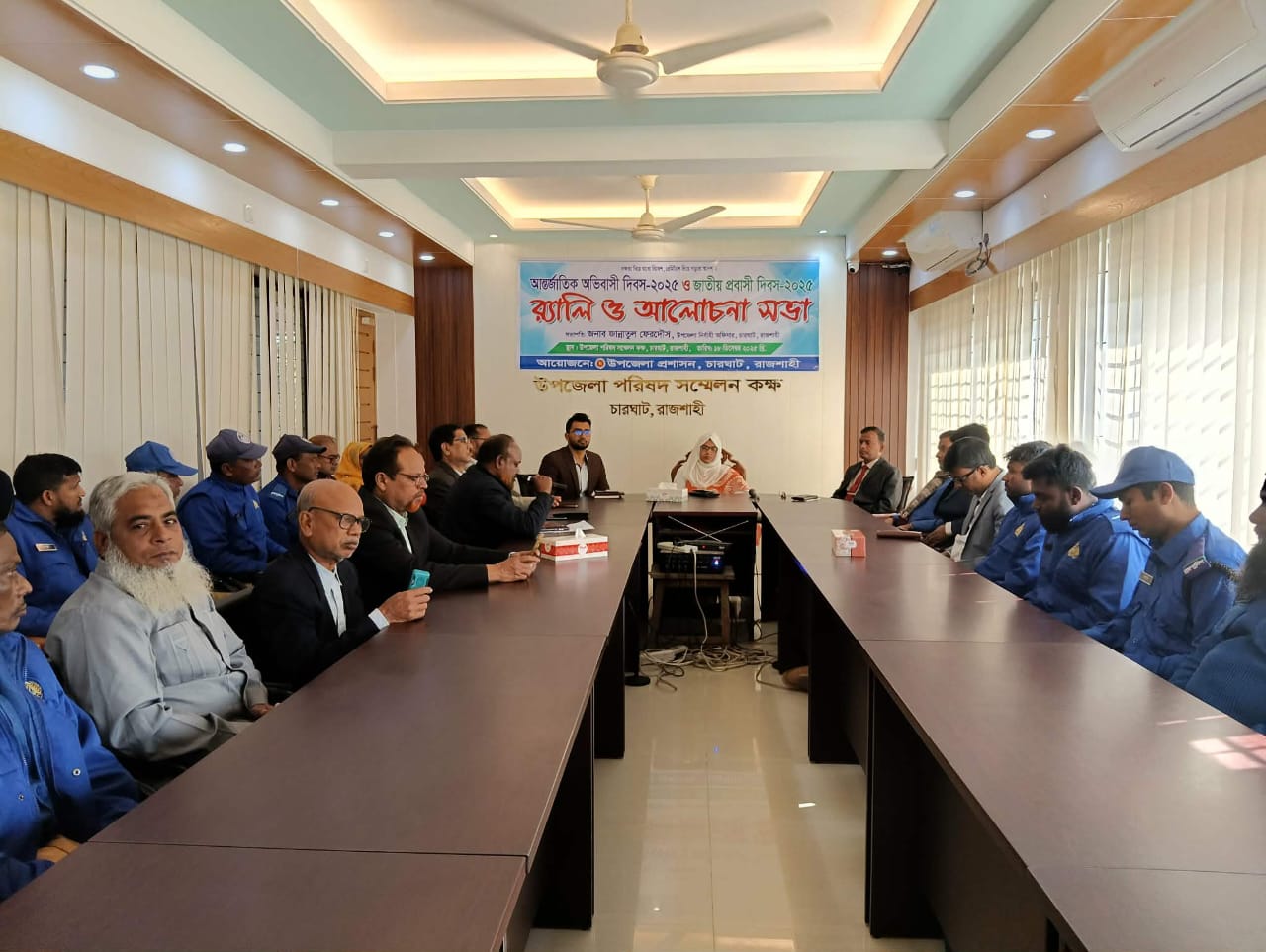 বৃহস্পতিবার (১৮ ডিসেম্বর) সকাল ১০ টায় উপজেলা প্রশাসনের আয়োজনে উপজেলা পরিষদ চত্বর থেকে একটি র্যালী বের হয়ে চারঘাটে বিভিন্ন রাস্তা প্রদক্ষিণ শেষে উপজেলা পরিষদ সম্মেলন কক্ষে আলোচনা সভা অনুষ্ঠিত হয়।