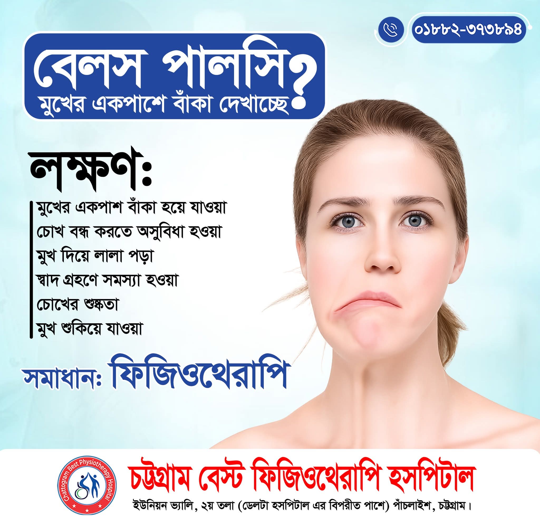 সঠিক সময়ে সঠিক চিকিৎসাই সুস্থতার চাবিকাঠি। বেলস পালসির ক্ষেত্রে ফিজিওথেরাপি অত্যন্ত কার্যকর এবং দ্রুত আরোগ্যে গুরুত্বপূর্ণ ভূমিকা রাখে।