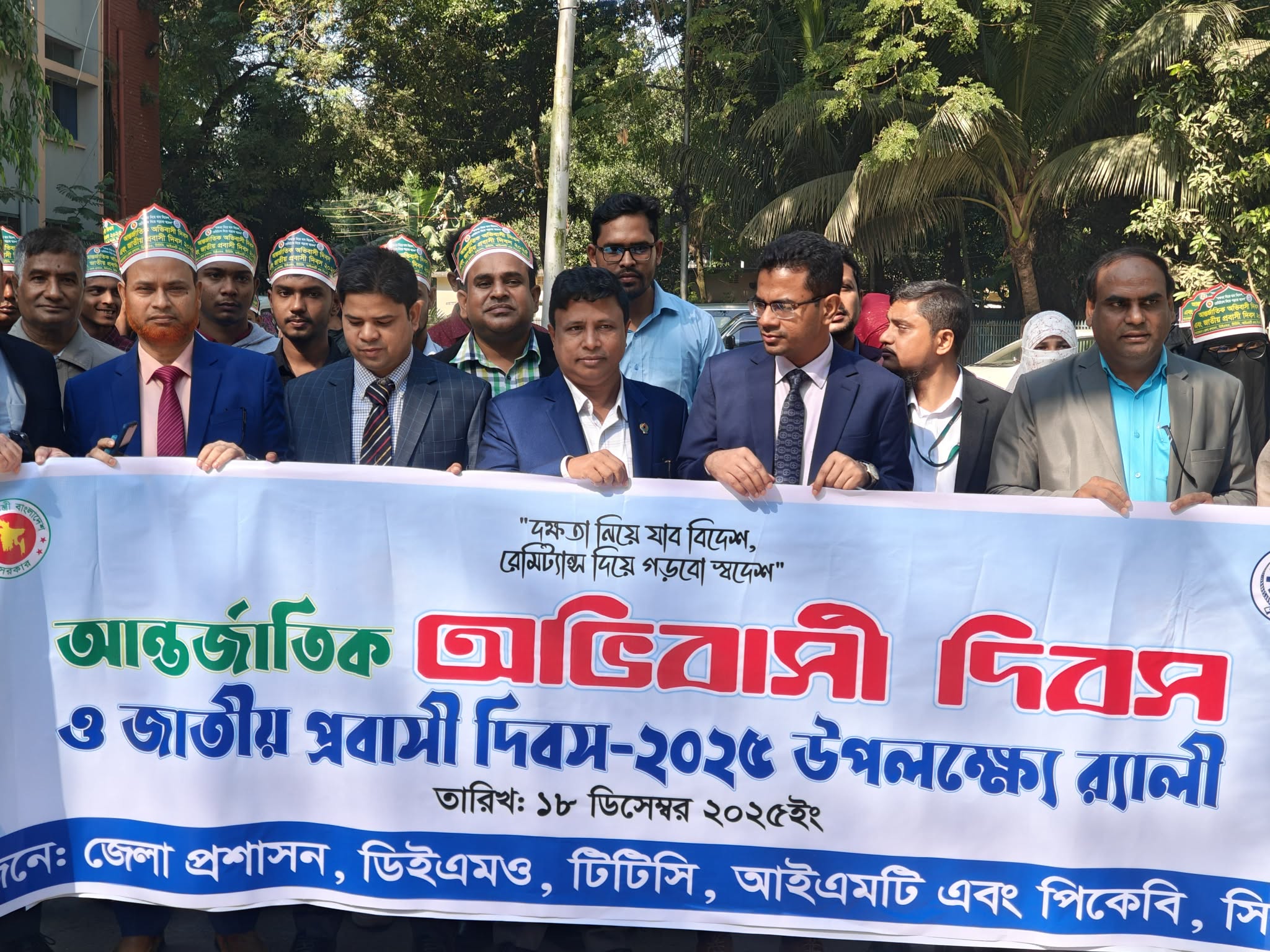বৃহস্পতিবার (১৮ডিসেম্বর-২০২৫খ্রিঃ) বেলা ১২ টায় জেলা প্রশাসক কার্যালয়ে সন্মুখ হতে র্যালি বের হয়ে সড়ক প্রদক্ষিণ করে অফিসার্স ক্লাব সন্মুখে অভিবাসন মেলার স্টল পরিদর্শন শেষে আলোচনা সভা ও পুরস্কার বিতরণ অনুষ্ঠিত হয়। এ দিবস উদযাপন অনুষ্ঠানের উদ্বোধক ও প্রধান অতিথি হিসেবে উপস্থিত ছিলেন, জেলা প্রশাসক মোঃ আমিনুল ইসলাম তিনি বলেন, যারা বিদেশ গমন করবেন জেনে শুনে সঠিক নিয়ম মেনে, আইন মেনে, দক্ষতা অর্জন করে সরকারি ভাবে বিদেশ যাবেন।