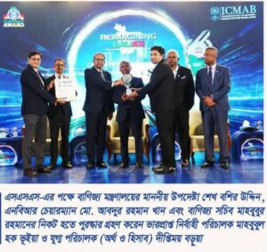 এসএসএস-এর পক্ষে এই মর্যাদাপূর্ণ পুরস্কার গ্রহণ করেন সংস্থার ভারপ্রাপ্ত নির্বাহী পরিচালক জনাব মাহবুবুল হক ভূইয়া এবং যুগ্ম পরিচালক (অর্থ ও হিসাব) জনাব দীপ্তিময় বড়ুয়া। এ সময় অনুষ্ঠানে উপস্থিত ছিলেন সহকারী পরিচালক (অর্থ ও হিসাব) জনাব সৈয়দ নাসির উদ্দিন ও জনাব মো. ওয়ালিউল্লাহ (গবেষণা ও প্রকাশনা)-সহ বিভিন্ন মন্ত্রণালয় ও নিয়ন্ত্রক সংস্থার ঊর্ধ্বতন কর্মকর্তারা।
