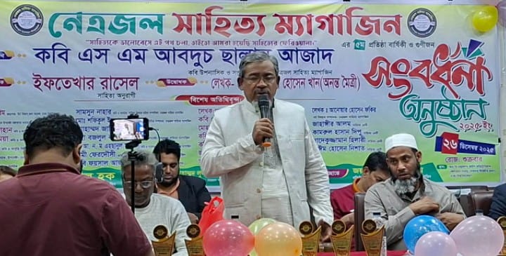 প্রতিবছরের ন্যায় এবারও গত ২৬ শে ডিসেম্বর ২০২৫ ইং রোজ শুক্রবার ঢাকা বিশ্ববিদ্যালয়ের আর সি মজুমদার অডিটোরিয়াম হলরুমে নেত্রজল সাহিত্য ম্যাগাজিন এর ৫ম প্রতিষ্ঠাবার্ষিকী ও গুণীজন সংবর্ধনা অনুষ্ঠান অনুষ্ঠিত হয়।