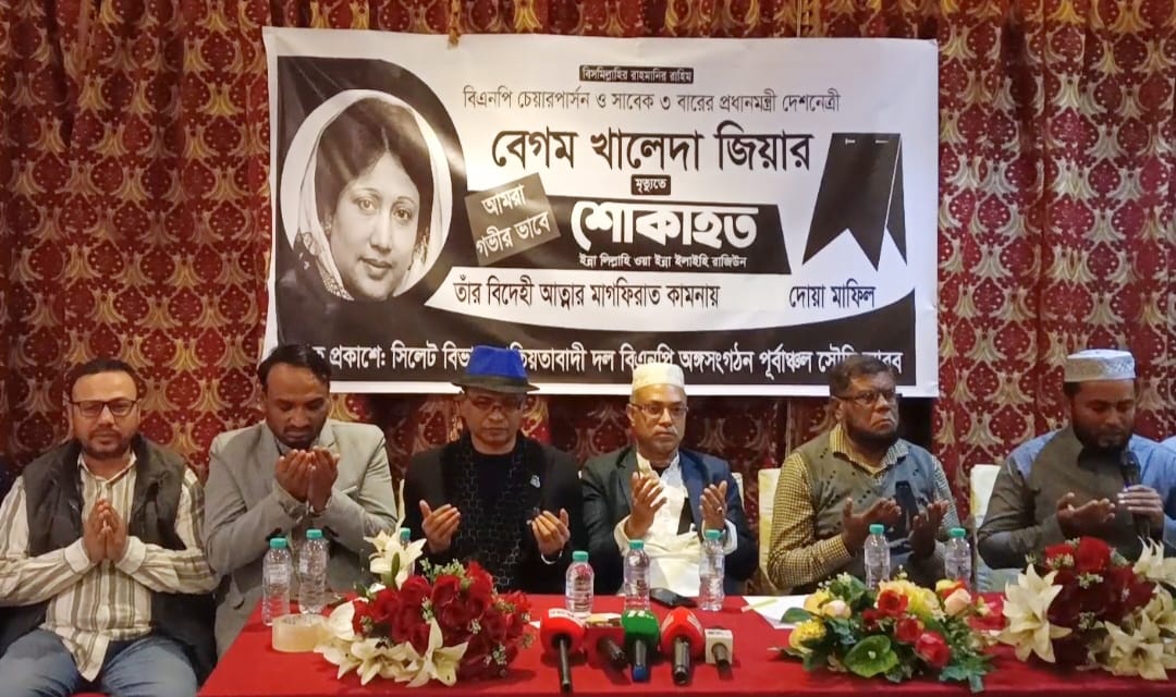 সৌদিআরব রিয়াদে প্রবাসী সিলেট বিভাগীয় জেলা বিএনপির আয়োজনে বেগম জিয়ার আত্মার মাগফিরাত কামনায় দোয়া অনুষ্ঠিত হয় বাথাহ হোটেল ডি-প্যালেসে।