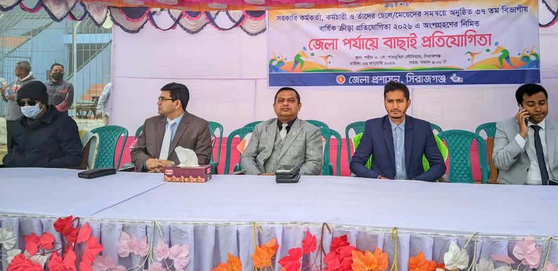 শনিবার (৩ জানুয়ারি-২০২৬খ্রি.) সকাল ৯ টায় সিরাজগঞ্জ শহিদ এ.কে শামসুদ্দিন স্টেডিয়ামে সিরাজগঞ্জ জেলার ৯টি উপজেলার সরকারি কর্মকর্তা, কর্মচারী ও তাদের ছেলে-মেয়েদের প্রত্যেক গ্রুপে- ১০০ মিটার দৌড় প্রতিযোগিতার প্রথম স্থান অর্জনকারী বিভাগীয় পর্যায়ে অংশ গ্রহণ করবে। এতে বয়স১৬ বছর পর্যন্ত -বালক (ক-দল), বালিকা ('ক'-দল), বালিকা-('খ' দল), শিশু (বালক 'গ'), পুরুষ কর্মকর্তা, মহিলা কর্মকর্তা, পুরুষ কর্মচারী, পুরুষ কর্মকর্তাদের স্পাউজ, মহিলা কর্মকর্তাদের স্পাউজ, পুরুষ কর্মচারীদের স্পাউজ, মহিলা কর্মচারীদের স্পাউজ অংশ গ্রহণ করে এতে দ্বিতীয় ও তৃতীয়স্থান অংশগ্রহণকারী বিজয়ীদের পুরস্কার দেওয়া হয়। উক্ত বার্ষিক ক্রীড়া প্রতিযোগিতা অনুষ্ঠানে প্রধান অতিথি হিসেবে উপস্থিত ছিলেন, জেলা প্রশাসক মোঃ আমিনুল ইসলাম এবং অতিরিক্ত জেলা প্রশাসক (সার্বিক) গণপতি রায় এর সভাপতিত্বে বিশেষ অতিথি হিসেবে উপস্থিত ছিলেন, বিজ্ঞ অতিরিক্ত জেলা ম্যাজিস্ট্রেট মো. আসসাদিকজামান, সদর উপজেলা নির্বাহী অফিসার মোঃ মামুন খান, সদর উপজেলা সহকারী কমিশনার (ভূমি) আফিফান নজমু, সহকারী কমিশনার মহসিন খন্দকার, মো. আখিরুজ্জামান, জেলা ক্রীড়া অফিসার মোঃ নূরে এলাহী প্রমুখ।