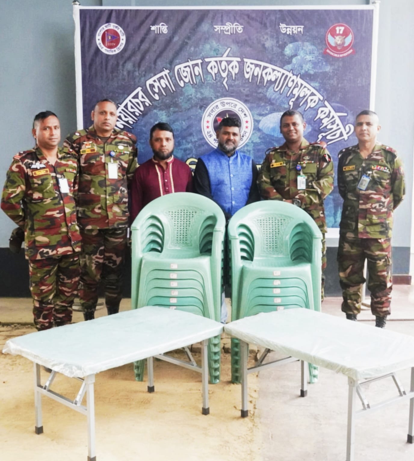 ১৩ জানুয়ারি ২০২৬, মঙ্গলবার নানিয়ারচর সেনা জোন (১৭ ই বেংগল) কর্তৃক 'সম্প্রীতি ও উন্নয়ন প্রকল্প' এর আওতায় নানিয়ারচর জোনের আওতাধীন নানিয়ারচর প্রেস ক্লাবের সার্বিক মানোন্নয়নের লক্ষ্যে প্রয়োজনীয় আসবাবপত্র (টেবিল ও চেয়ার) প্রদান করা হয়।
