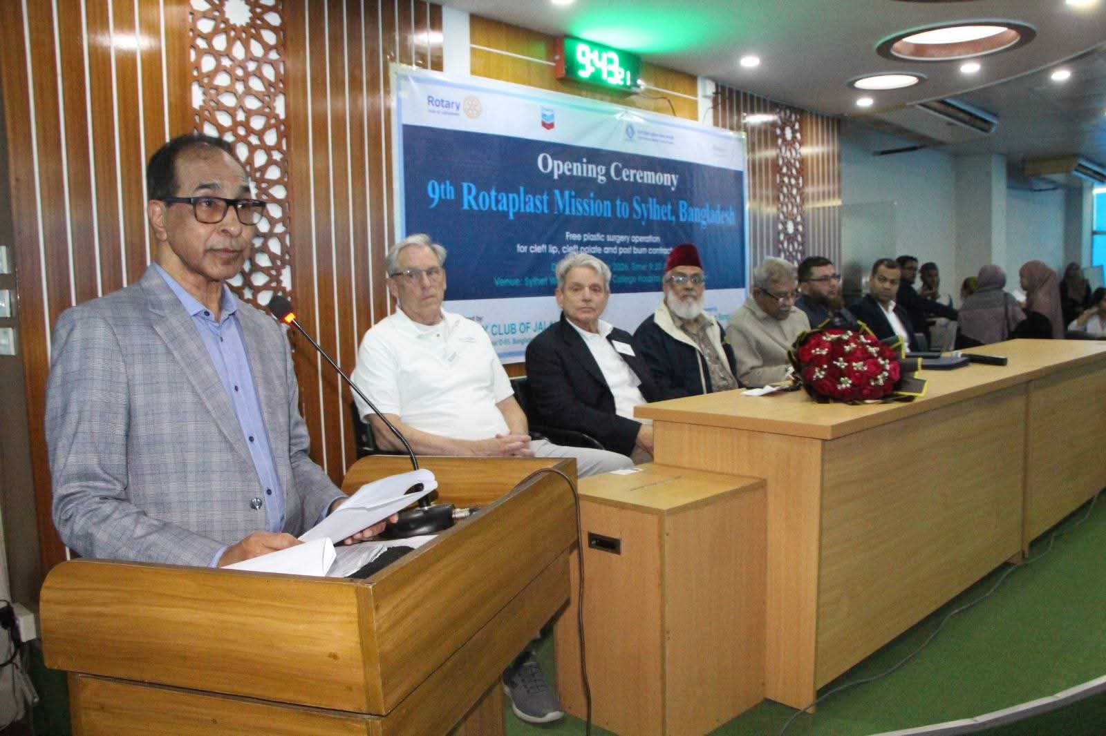 ১৩ জানুয়ারি ২০২৬, সোমবার সকাল ০৯:৩০ ঘটিকায় সিলেট উইমেন্স মেডিকেল কলেজের ৪র্থ তলার লেকচার গ্যালারী-২তে অনুষ্ঠিত উদ্বোধনী অনুষ্ঠানে রোটাপ্লাস্ট মিশন কমিটির চেয়ারম্যান পিপি ইঞ্জিনিয়ার সুয়েব আহমদ মতিন এর পরিচালনায় সম্মানিত অতিথিদের মধ্যে বক্তব্য রাখেন, সিলেট উইমেন্স মেডিকেল কলেজ হাসপাতাল পরিচালক ও উপদেষ্টা মেজর জেনারেল ডা. সৈয়দ ইফতেখার উদ্দীন (অবঃ), হলি সিলেট হোল্ডিং লিমিটেড এর চেয়ারম্যান অধ্যাপক ডা: ফজলুর রহিম কায়সার, ব্যবস্থাপনা পরিচালক অধ্যাপক ডাঃ ওয়েছ আহমদ চৌধুরী, শেভরন বাংলাদেশের স্যোশাল ইনভেস্টমেন্ট ম্যানেজার এ কে এম আরিফ আকতার, শেভরনের গ্যাস প্লান্টের সুপারিনটেনডেন্ট আবু হেনা মোহাম্মদ হাসানুজ্জামান, রোটাপ্লাস্ট মিশনের মেডিকেল ডিরেক্টর টড ফার্নওয়ার্থ, মিশন ডিরেক্টর টেড এলেক্স, রোটারি ক্লাব অফ জালালাবাদের পিডিজি লেফটেন্যান্ট কর্ণেল (অবঃ) এম আতাউর রহমান পীর, রোটারি ক্লাব অব জালালাবাদের সভাপতি সুব্রত চক্রবর্তী জুয়েল, সেক্রেটারি রোটারিয়ান মিজানুর রহমান।