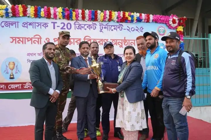 জেলা প্রশাসক টি-২০ ক্রিকেট টুর্নামেন্ট-২০২৫ এর চ্যাম্পিয়ন হওয়ার গৌরব অর্জন করে ঝিনাইগাতী উপজেলা প্রশাসন। চ্যাম্পিয়ন দলের পক্ষে জেলা প্রশাসকের নিকট থেকে পুরস্কার গ্রহণ করেন ঝিনাইগাতী উপজেলা সহকারী কমিশনার (ভূমি) অনিন্দিতা রানী ভৌমিক।