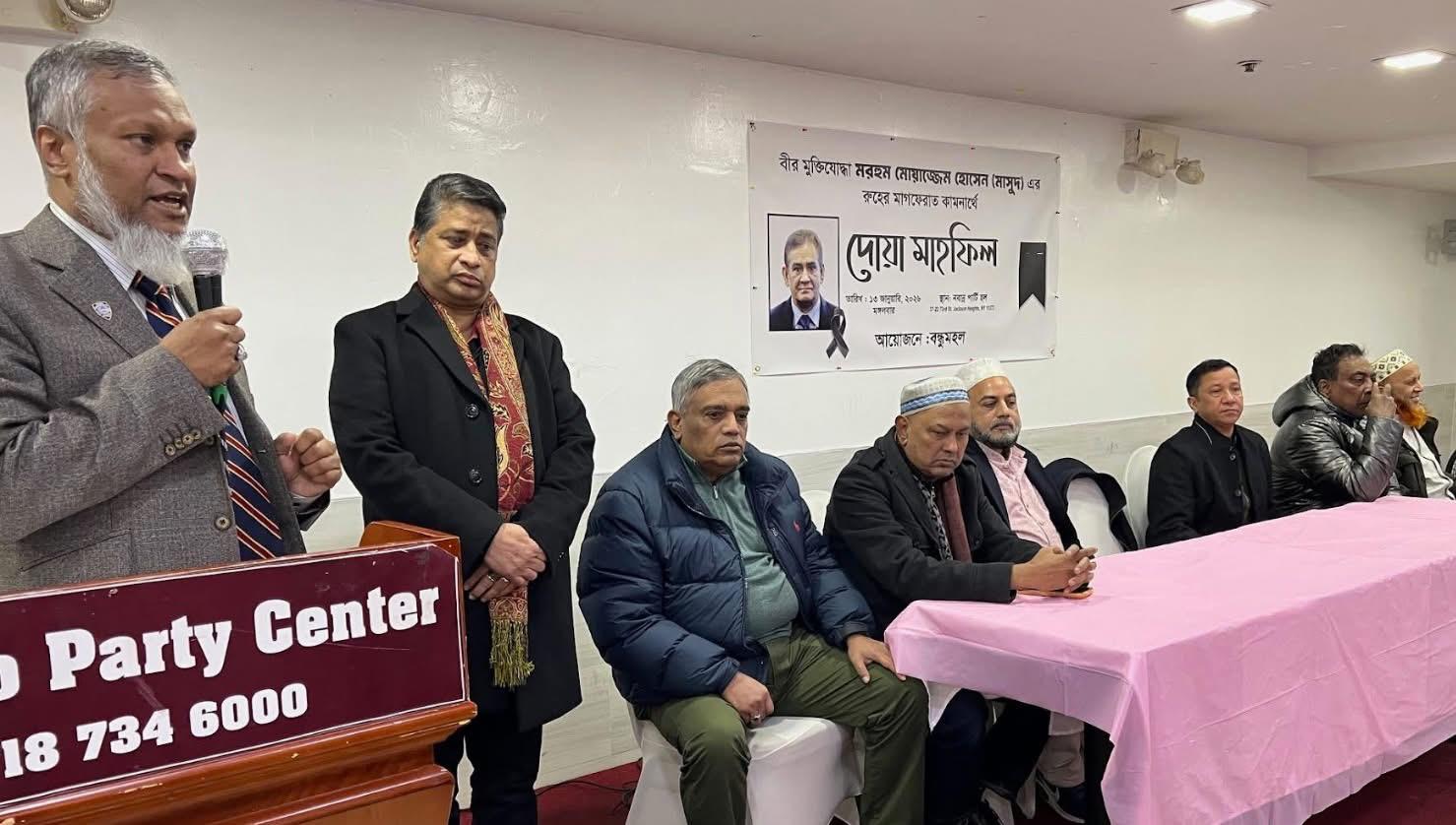 গত মঙ্গলবার,১৩ জানুয়ারি ২০২৬,সন্ধ্যা সাড়ে ৭টায় নিউইয়র্ক এর বাংগালি অধ্যুষিত জ্যাকসন হাইটসের নবান্ন পার্ট হলে সম্প্রতি নিউইয়র্কে প্রয়াত বীর মুক্তিযোদ্ধা মোয়াজ্জেম হোসেন মাসুদ এর স্মরণে তার বন্ধুমহলের উদ্যোগে আয়োজিত এক দোয়া মাহফিল অনুষ্ঠিত হয় ।
