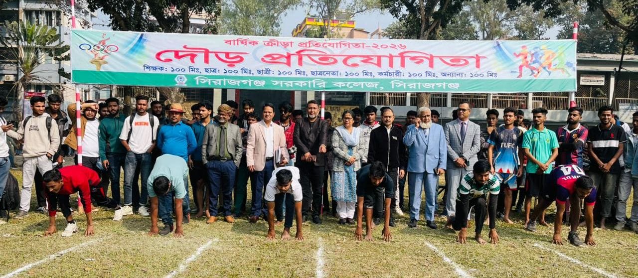 সিরাজগঞ্জ সরকারি কলেজে'র আয়োজনে কলেজের বার্ষিক ক্রীড়া প্রতিযোগিতা-২০২৬ খ্রি. এর শুভ উদ্বোধন করা হয়। এ প্রতিযোগিতার শুরুতেই পবিত্র কোরআন তেলোয়াত ও গীতা পাঠ করার পর জাতীয় পতাকা ও ক্রীড়া পতাকা উত্তোলন করার মাধ্যমে এবং মশাল পরিভ্রমণ অনুষ্ঠানের শুভ সূচনা করা হয় ।