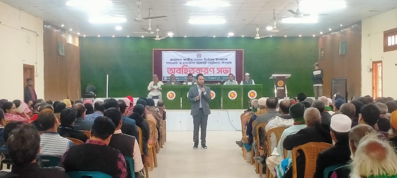 আসন্ন ত্রয়োদশ জাতীয় সংসদ নির্বাচন ও গণভোটকে সামনে রেখে সুনামগঞ্জের বিশ্বম্ভরপুর উপজেলায় গণভোট ও পোস্টাল ব্যালটে ভোটদান বিষয়ক এক অবহিতকরণ সভা অনুষ্ঠিত হয়েছে।