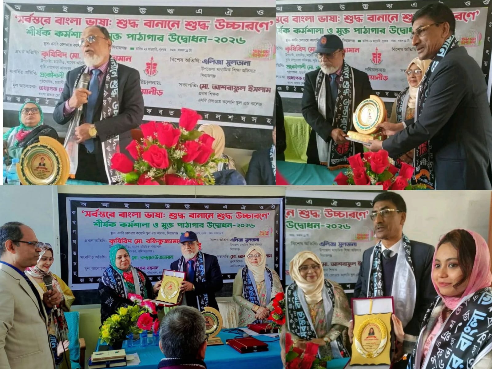 সিরাজগঞ্জে এসবি রেলওয়ে কলোনি উচ্চ বিদ্যালয়ে "সর্বস্তরে বাংলা ভাষা শুদ্ধ বানানে শুদ্ধ উচ্চারণে" শীর্ষক কর্মশালা ও মুক্ত পাঠাগার উদ্বোধন "-২০২৬খ্রি. করা হয়। এ অনুষ্ঠানে অতিথিদেরকে ফুলেল শুভেচ্ছা অভিনন্দন জানিয়ে স্মারক সন্মাননা প্রদান করা হয়।