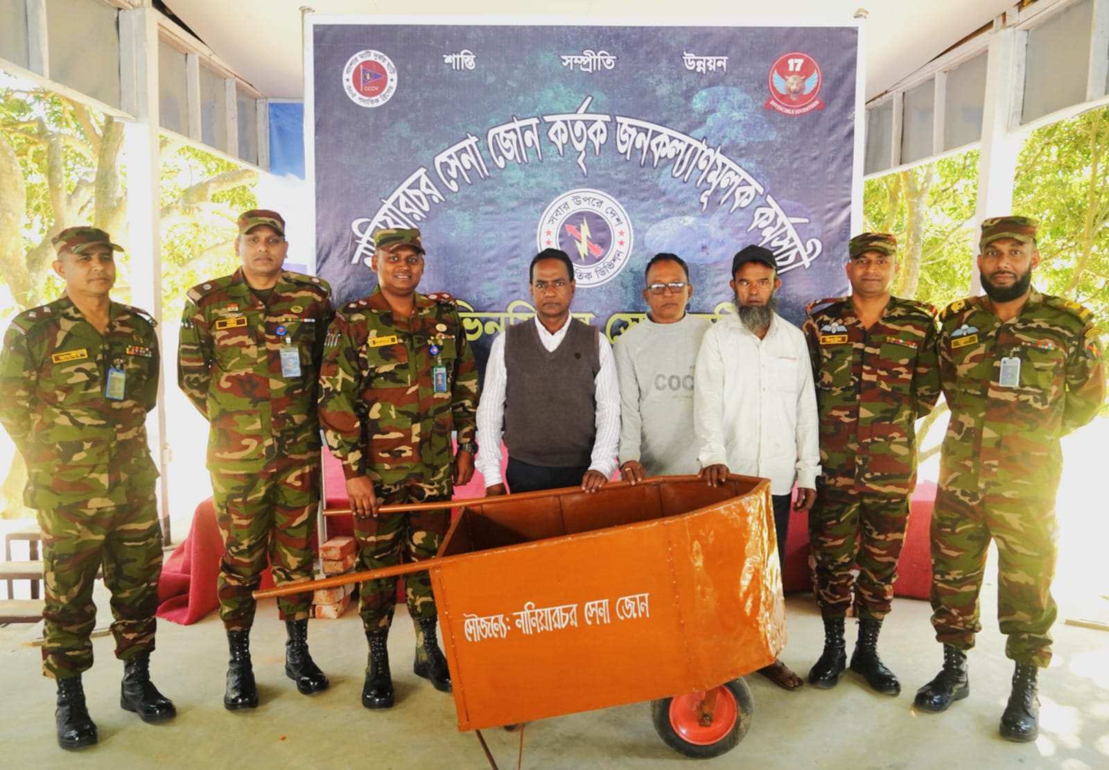 উক্ত আশ্বাসেরই ধারাবাহিকতায় অদ্য ০৩ ফেব্রুয়ারি ২০২৬ তারিখে জোন কমান্ডার, নানিয়ারচর জোন, বিএ-৭৯০০ লেঃ কর্নেল মোঃ মশিউর রহমান, পিএসসি কর্তৃক নানিয়ারচর বাজার এর সভাপতি উত্তম কুমার ও সাধারণ সম্পাদক সানাউল্লাহর নিকট উক্ত ট্রলি গাড়ীটি আনুষ্ঠানিকভাবে হস্তান্তর করেন।