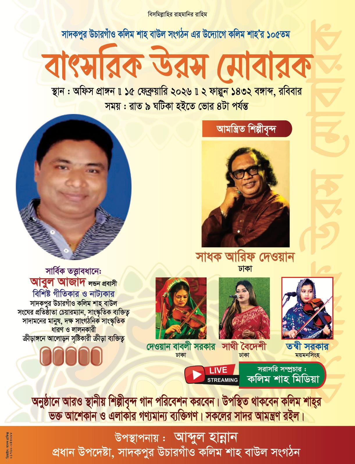 সাদেকপুর উচারগাঁওয়ে পীর কলিম শাহ (রহ.)-এর ১০৫তম বার্ষিক উরস মোবারক আজ