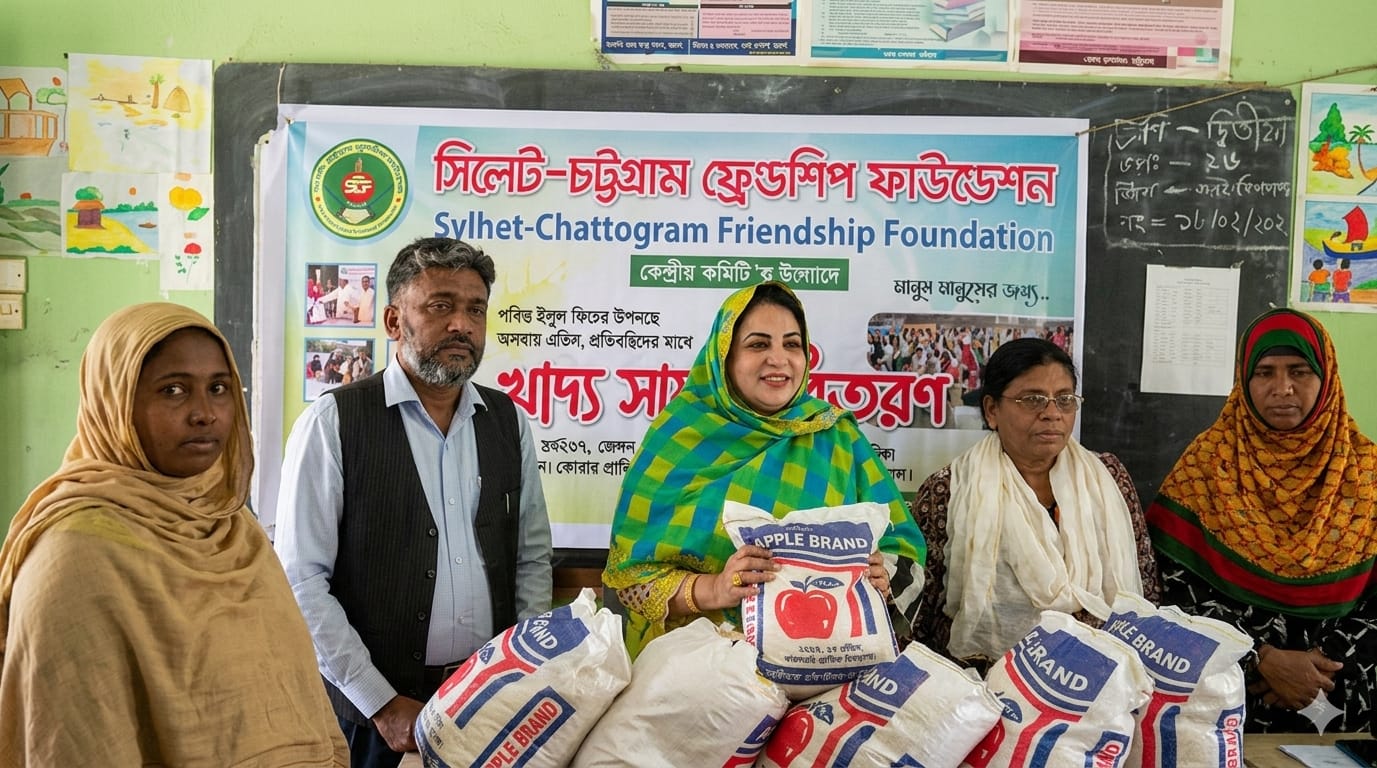 মানুষ মানুষের জন্য মানবিক সংগঠন সিলেট-চট্টগ্রাম ফ্রেন্ডশিপ ফাউন্ডেশন কেন্দ্রীয় কমিটি'র উদ্যোগে ১৩ মার্চ ২০২৬, শুক্রবার, দুপুর ১২ টায় চট্টগ্রাম চান্দগাঁওস্থ সেন্ট্রাল মোহরা সরকারি প্রাথমিক বিদ্যালয় প্রাঙ্গনে পবিত্র ঈদুল ফিতর উপলক্ষে অসহায় এতিম, হতদরিদ্র প্রতিবন্ধি অর্ধশতাধিক পরিবারের মাঝে খাদ্য সামগ্রী বিতরণ করা হয়েছে।
