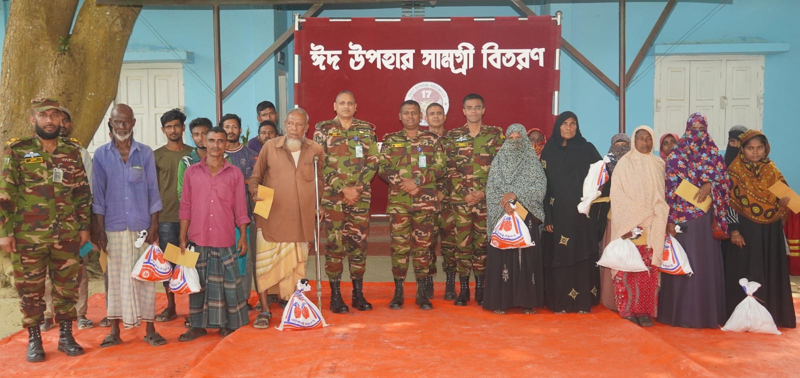 রাঙ্গামাটি নানিয়ারচর উপজেলায় ১৬ মার্চ ২০২৬, সোমবার নানিয়ারচর সেনা জোন (১৭ ই বেংগল) এর উদ্যোগে জোনের আওতাধীন এলাকার ৪১ মুসলিম পরিবারের মাঝে ঈদ-উল-ফিতর ২০২৬ উপলক্ষে ঈদ উপহার সামগ্রী, ঈদ পোষাক এবং আর্থিক অনুদান প্রদান করা হয়।