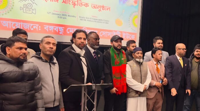 শহিদুল ইসলাম, প্রতিবেদক: ১৩ জানুয়ারি, ২০২৬, মঙ্গলাবার যুক্তরাজ্যের বৃটিশ বাংলাদেশি কমিউনিটির পক্ষ থেকে কমিউনিটির সুপরিচিত ব্যক্তিত্ব যথাক্রমে বিশিষ্ট আইনজীবী, লেখক ও সংবিধান বিশেষজ্ঞ ব্যারিস্টার নাজির আহমদ এবং বিশিষ্ট কমিউনিটি নেতা