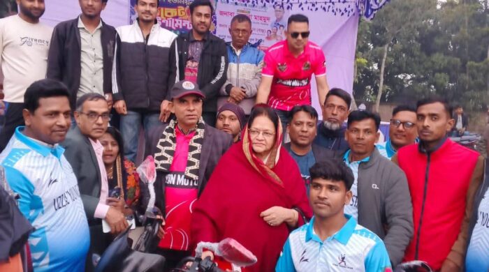 আজিজুর রহমান মুন্না, সিরাজগঞ্জঃ সিরাজগঞ্জ শহরের ঐতিহ্যবাহী ক্রীড়া সংগঠন – “মাছুমপুর ক্রীড়া চক্র” এর ৫০বছর পূর্তি “সুবর্ণজয়ন্তী” উৎসব-২০২৬ খ্রি. উদযাপন উপলক্ষ্যে-অংশগ্রহণকারীরা ব্যানার ফেস্টুন হাতে নিয়ে আনন্দ শোভা এবং বিকেলে প্রীতি