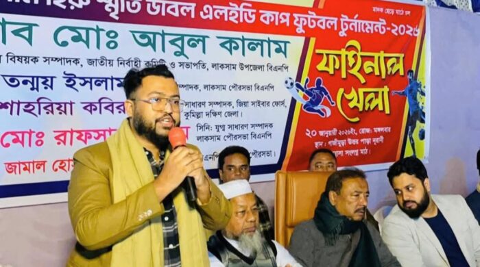 রবিউল হোসাইন সবুজ (কুমিল্লা) প্রতিনিধি: কুমিল্লার লাকসামে সাবেক সংসদ সদস্য মরহুম সাইফুল ইসলাম হিরুর স্মরণে আয়োজিত “সাইফুল ইসলাম হিরু স্মৃতি ডাবল এলইডি কাপ ফুটবল টুর্নামেন্ট ২০২৬”-এর ফাইনাল খেলা অনুষ্ঠিত হয়েছে। আরও পড়ুন