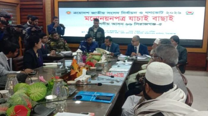 আজিজুর রহমান মুন্না সিরাজগঞ্জঃ আসন্ন ত্রয়োদশ জাতীয় সংসদ নির্বাচনে সিরাজগঞ্জের ৬টি আসনে যাচাই-বাছাই শেষে ১৩ জন প্রার্থীর মনোনয়নপত্র বাতিল ঘোষণা করা হয়েছে। রোববার (৪ জানুয়ারি-২০২৬খ্রি.) সকাল ১০টা থেকে জেলা প্রশাসক