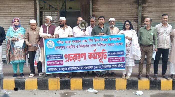 আজিজুর রহমান মুন্না, সিরাজগঞ্জঃ সিরাজগঞ্জে পবিত্র মাহে রমজান এবং ঈদ উল- ফিতর উপলক্ষ্যে- দ্রব্যমূল্যে সহনীয় ও নিরাপদ খাদ্য নিশ্চিত করার লক্ষ্যে প্রচারণা কর্মসূচি পালন করা হয়। কনজ্যুমারস এসোসিয়েসন অব বাংলাদেশ