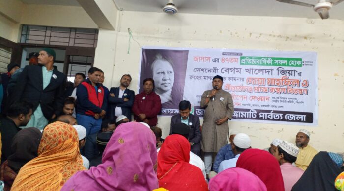 এম এস শ্রাবন মাহমুদ স্টাফ রিপোর্টার জাতীয়তাবাদী সামাজিক সাংস্কৃতিক সংস্থা (জাসাস)এর ৪৭তম প্রতিষ্ঠাবার্ষিকী উপলক্ষে রাঙ্গামাটি জেলায় দোয়া মাহফিল ও শীতার্তদের মাঝে কম্বল বিতরণ কর্মসূচি পালিত হয়েছে। শনিবার (১০ জানুয়ারি)২৬ খ্রিঃ