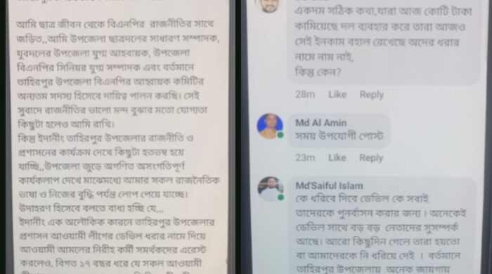 স্টাফ রিপোর্টার সুনামগঞ্জ ছাত্র জনতার আন্দোলনের ফ্যাসিস আওয়ামীলীগের নেতা কর্মী গন ঘা ডাকা দিলেও সুনামগঞ্জের তাহিরপুর উপজেলায় ব্যাতিক্রম। বুক ফুলিয়ে উপজেলা আওয়ামীলীগের যুগ্ম সম্পাদকসহ নেতৃস্থানীয় নেতারা প্রকাশ্যে ঘোড়াফেরা করছে। নিজেদের