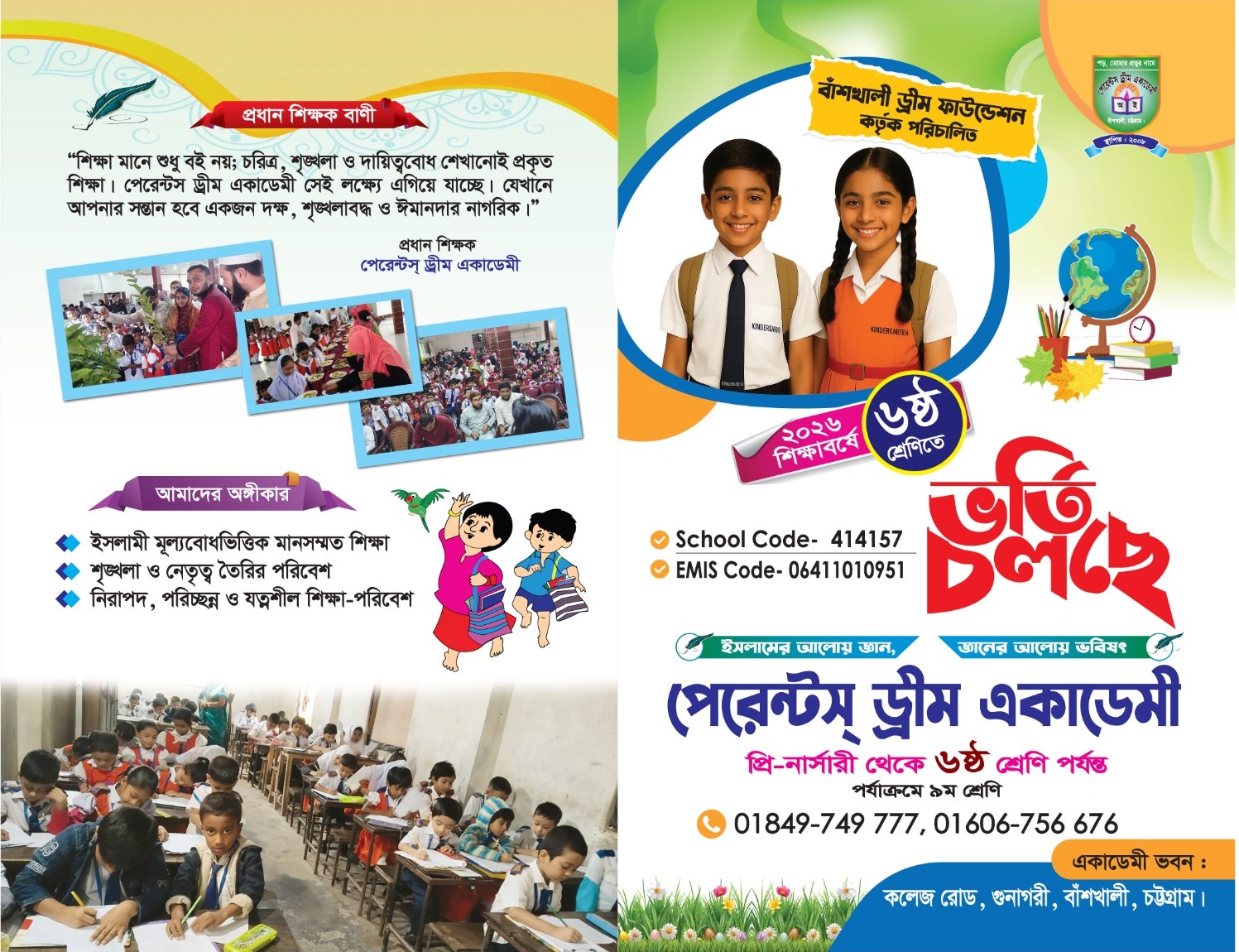 মোহাম্মদ আমিনুল ইসলাম চট্টগ্রাম বাঁশখালী প্রতিনিধি বাঁশখালী উপজেলার বানিজ্যিক রাজধানী হিসেবে খ্যাত গুনাগরী কলেজ রোডে অবস্থিত মানসম্মত শিক্ষা-বিষয়ক প্রতিষ্ঠান পেরেন্টস ড্রিম একাডেমি–তে আগামী ২০২৬ সাল থেকে আনুষ্ঠানিকভাবে ৬ষ্ঠ শ্রেণির পাঠদান আরও পড়ুন