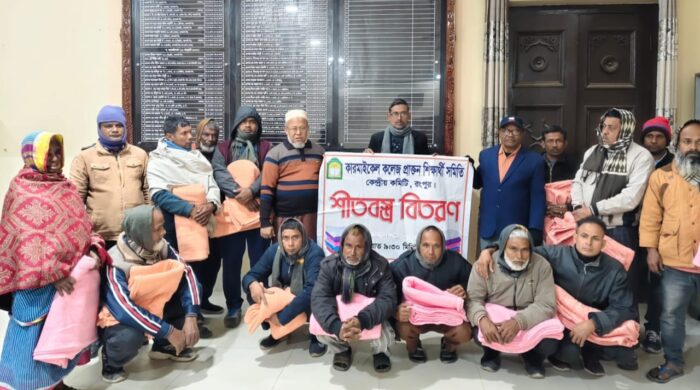 নিজস্ব প্রতিবেদক, রংপুর। উত্তরের জনপদে জেঁকে বসা হাড়কাঁপানো শীতে অসহায় মানুষের পাশে দাঁড়িয়েছে কারমাইকেল কলেজ প্রাক্তন শিক্ষার্থী সমিতি, কেন্দ্রীয় কমিটি, রংপুর। সংগঠনের উদ্যোগে কারমাইকেল কলেজের বিভিন্ন হোস্টেলের বয়, রাধুনি ও
