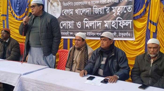 মোঃ আব্দুস সবুর(স্টার্ফ রিপোর্টার): সাবেক তিন বারের প্রধানমন্ত্রী ও বিএনপি চেয়ারপার্সন মরহুমা বেগম খালেদা জিয়ার রুহের মাগফেরাত কামনায় বালিয়াডাঙ্গী উপজেলার চাড়োল ইউনিয়ন বিএনপির আয়োজনে শনিবার (৩ জানুয়ারী) বিকাল ৪ টায়