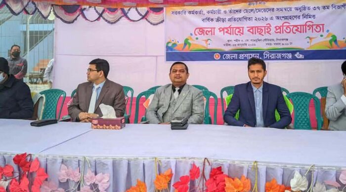সিরাজগঞ্জ সরকারি কর্মকর্তা, কর্মচারী ও তাদের ছেলে-মেয়েদের সমন্বয়ে ৩৭ তম বিভাগীয় বার্ষিক ক্রীড়া প্রতিযোগিতা-২০২৬ খ্রি. অংশগ্রহন নিমিত্ত জেলা পর্যায়ে অনুষ্ঠিত।