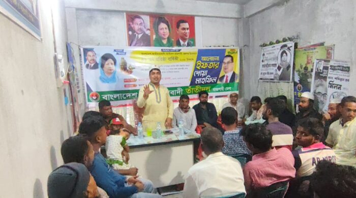 মোঃ সুজন আহাম্মেদ বিভাগীয় চিফ রাজশাহী। ২৫ ফেব্রুয়ারি, ২০২৬ বাংলাদেশ জাতীয়তাবাদী তাঁতীদলের ৪৬তম প্রতিষ্ঠাবার্ষিকী উপলক্ষে রাজশাহী জেলা শাখার উদ্যোগে পবা উপজেলার হরিপুর ইউনিয়ন বিএনপির পার্টি অফিসে আলোচনা সভা, দোয়া মাহফিল