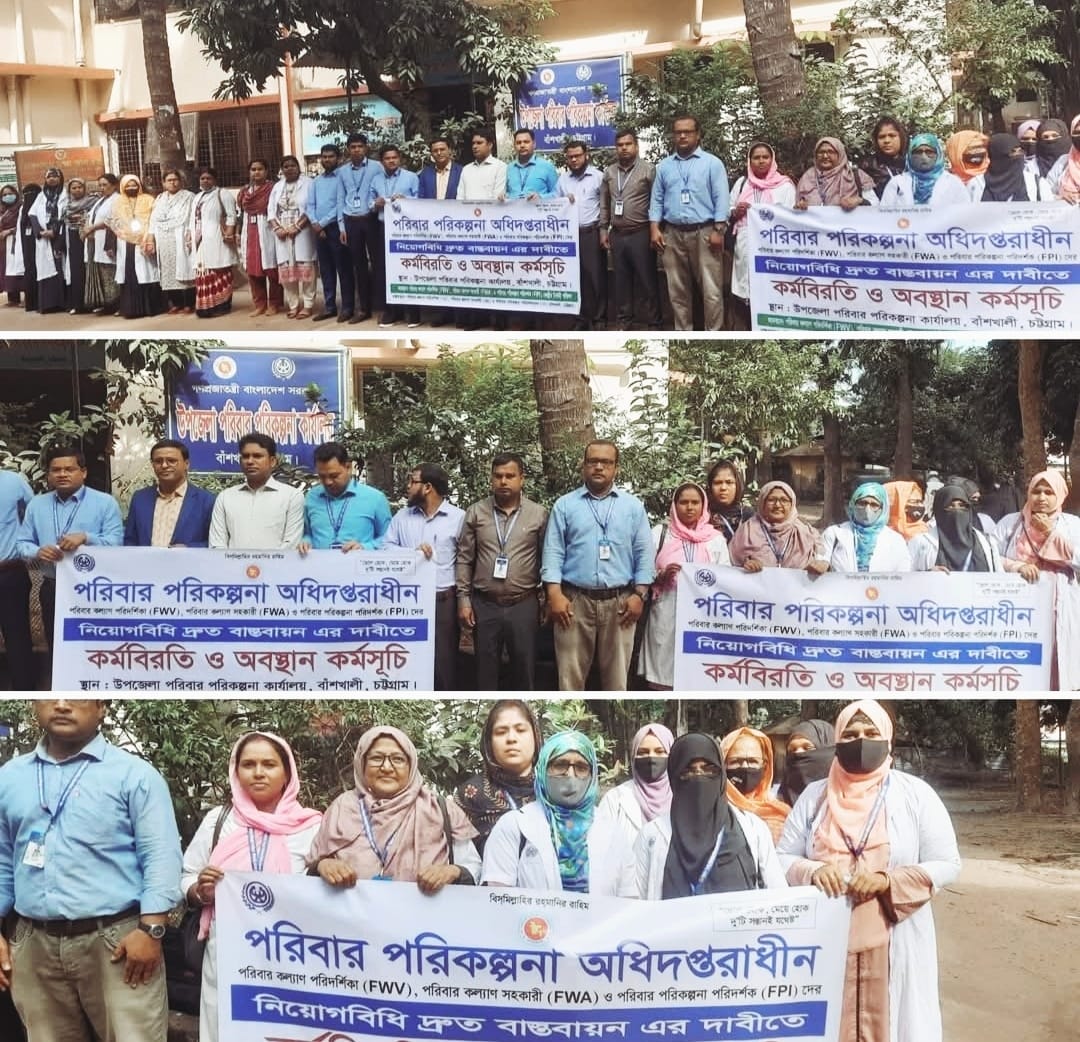 মোহাম্মদ আমিনুল ইসলাম চট্টগ্রাম বাঁশখালী প্রতিনিধি চট্টগ্রামের বাঁশখালীতে পরিবার পরিকল্পনা বিভাগের মাঠপর্যায়ের কর্মীরা নিয়োগবিধি বাস্তবায়ন, পদোন্নতি ও বেতন বৈষম্য দূরীকরণসহ বেশ কয়েকটি দাবিতে অবস্থান কর্মসূচি পালন করেছেন। আজ ২ ডিসেম্বর