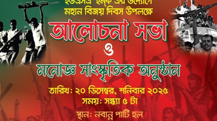হাকিকুল ইসলাম খোকন, বাপসনিউজঃ নিউইয়র্কের বাংগালি এলাকা হিসেবে পরিচিত জ্যাকসন হাইটসের নবান্ন পার্টি হলে শনিবার,২০ ডিসেম্বর ২০২৫,সন্ধ্যায় বাংলাদেশের ৫৪তম মহান বিজয় দিবস’ উপলক্ষে বাংলাদেশ লিবারেশন ওয়্যার ভেটারন্স-১৯৭১’ ইউএসএ “র সমাবেশ